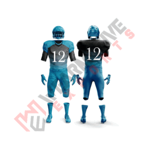American football uniforms are high-tech, protective athletic wear featuring a jersey, pants, and helmet, with team logos, colors, and numbers, made from durable, breathable materials, designed for safety, comfort, and team identity on the gridiron.